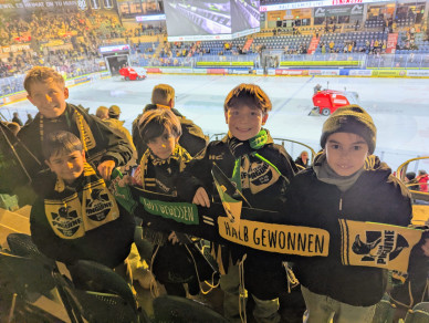 Mit Plätzen direkt hinter der Bande waren die 58 Spieler, Trainer und Eltern mitten im Geschehen. Die unglaubliche Atmosphäre, die rasante Geschwindigkeit auf dem Eis und die zahlreichen Tore sorgten bei allen Beteiligten für echte Gänsehaut-Momente und strahlende Gesichter.